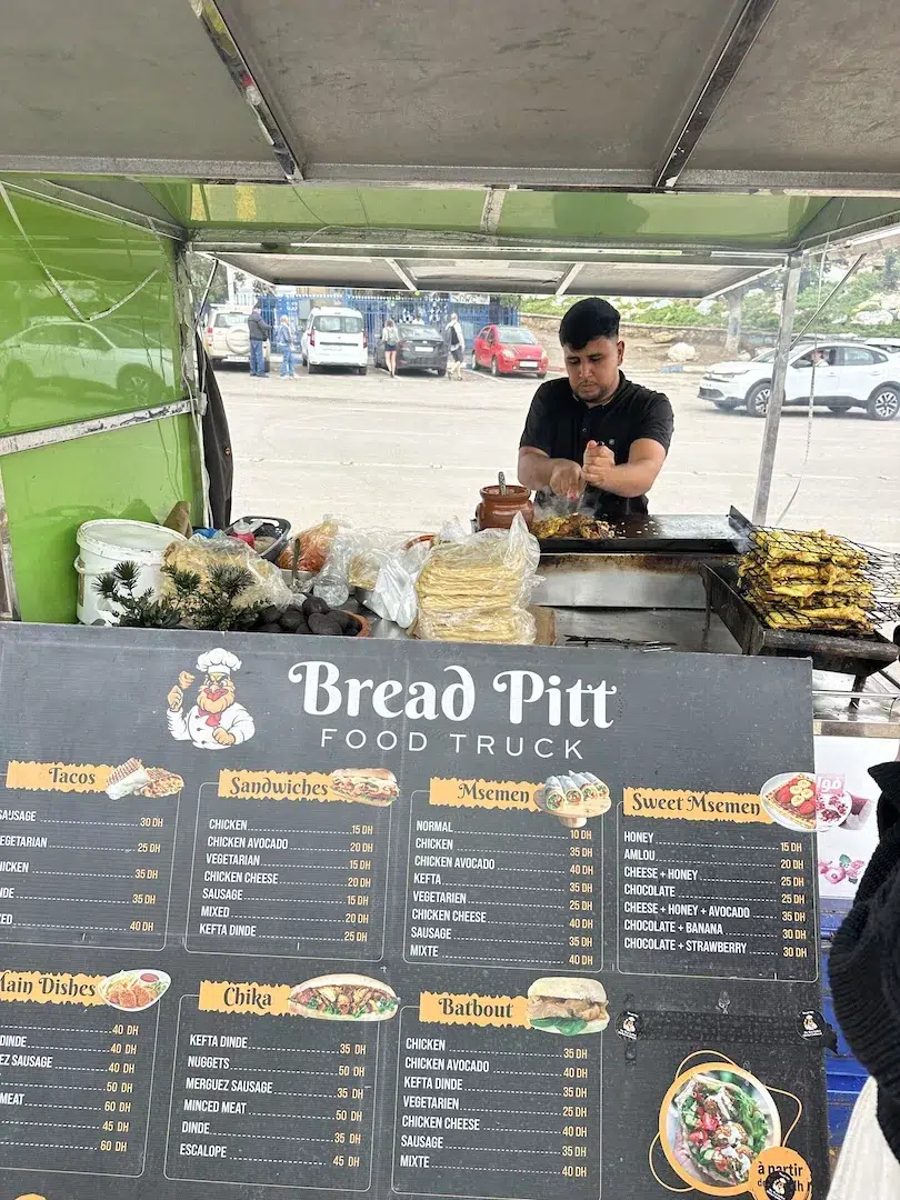 Okay so you’ll find a fair few of these around town and I don’t think you can go wrong at any of them! I personally frequented the one that is in the square, and when you walk up to it, it’s located on the right hand side but straight ahead. There is a corner restaurant there where the tables go into the walkway, and there’s a crepe stand before you get to it, and a crepe stand on the left hand side of it. I couldn’t find it’s exact name on Google maps and sadly I didn’t take a pic of it, but I ate one here many times and they are sooo good and cheap, only 40 MAD which is $4 and they are filling! Just note, their “tacos” are actually like burritos.