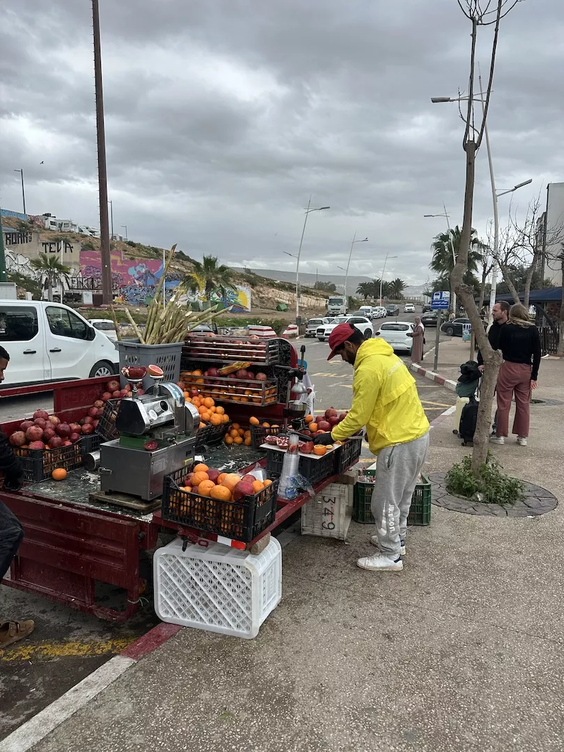 >>Local stand: If you head to the beach where the actual town is, right where all of the blue fishing boats are parked up on the beach, you’ll see a guy here with a coffee cart. His coffee is pretty good for local coffee and is super cheap at only 15 MAD so $1.50. Great spot if you’re on a budget but can’t go without your daily coffee.