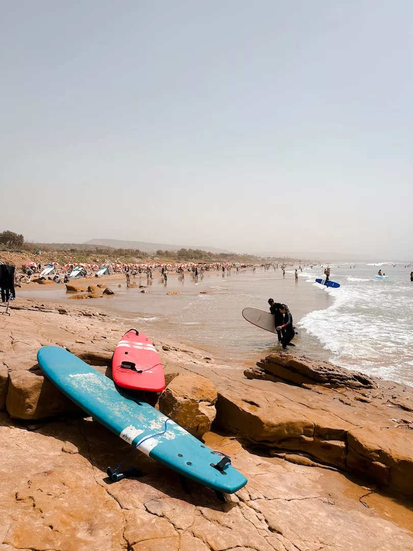 If you already know how to surf and just want to rent gear, you’ll find a lot of places around Taghazout and at the beach that are renting out boards and wetsuits. I believe you can expect to pay anywhere from 50-80 MAD – so search around for the best rate.