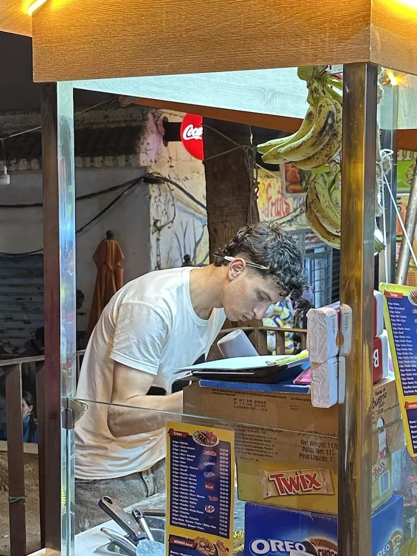 The crepes here are soo good and you must try them! You’ll see a bunch of crepe stands all over town. I personally loved going to the one in the square, across from the restaurant J cool, and I believed it’s called Crepes Jcool. They have so many flavors and are around 15-35 MAD each depending on what flavor combo you get. I got the bananas and biscoff and it was SCRUMPTIOUS! There is another popular one around the corner called AZIZ’s as well. Look for the guy in the pic below to see if it’s Jcool’s stand.